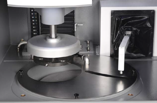 Proben oder eines sehr großen Probenvolumens bestens geeignet und speziell dafür ausgelegt. Sie liefert sehr schnell und wirtschaftlich, plane Oberflächen von hoher Qualität schon in der ersten Präparationsstufe, wodurch erheblich Zeit bei den nachfolgenden Feinschleif- und Polierschritten eingespart werden kann. Bis zu 10 Proben (max. Probenhalter-Ø 220 mm) können in Kombination mit einem Ø 350 mm Schleifstein in weniger als einer Minute plangeschliffen werden.