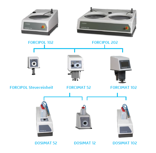 Die Forcipol 102 ist ein einspindliges Schleif- und Poliergerät für Arbeitsscheiben Ø 200 - 300 mm. Das Gerät überzeugt ganz besonders durch seine einfache Bedienung und bietet durch seinen vibrationsfreien Lauf ein Höchstmaß an Möglichkeiten. Variable Drehzahl 50 – 600 U/min