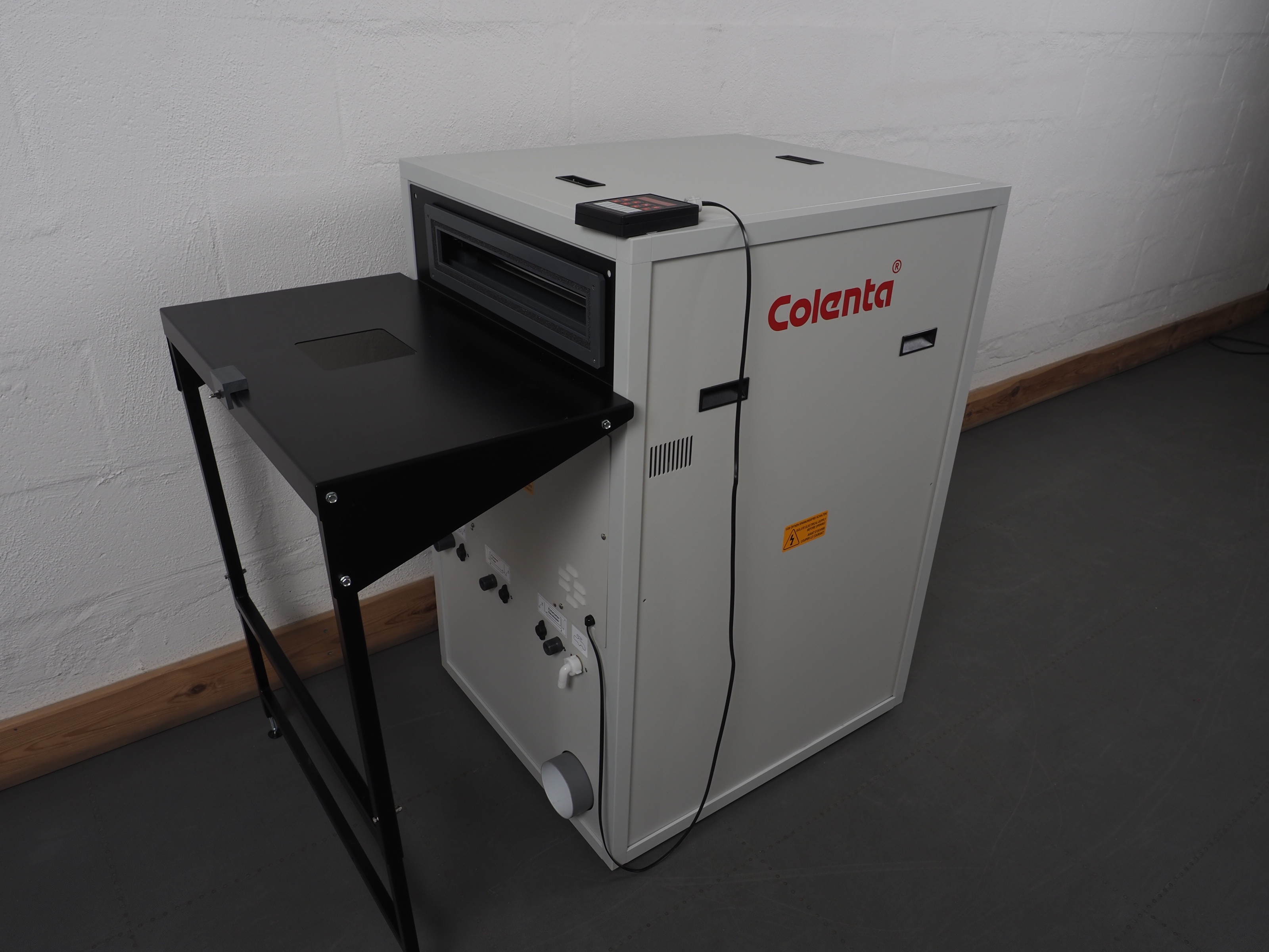 Im Zuge der Installation wird die Maschine hier an ein externes Belüftungssystem angeschlossen, welches am Aufstellungsort hergestellt werden soll (mit ausreichender Leistung, um die warme Abluft aus dem Verarbeitungsbereich abzuführen).