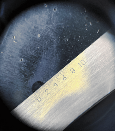 Die Eindrucksmessung kann sofort mit der Lupe erfolgen und auch später von der Qualitätskontrolle durchgeführt werden, da eine durch den Scherstift genau definierte Prüfkraft vorhanden ist.